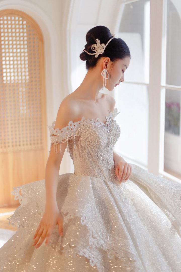 大拖尾裙襬隨步伐展現柔美氣勢