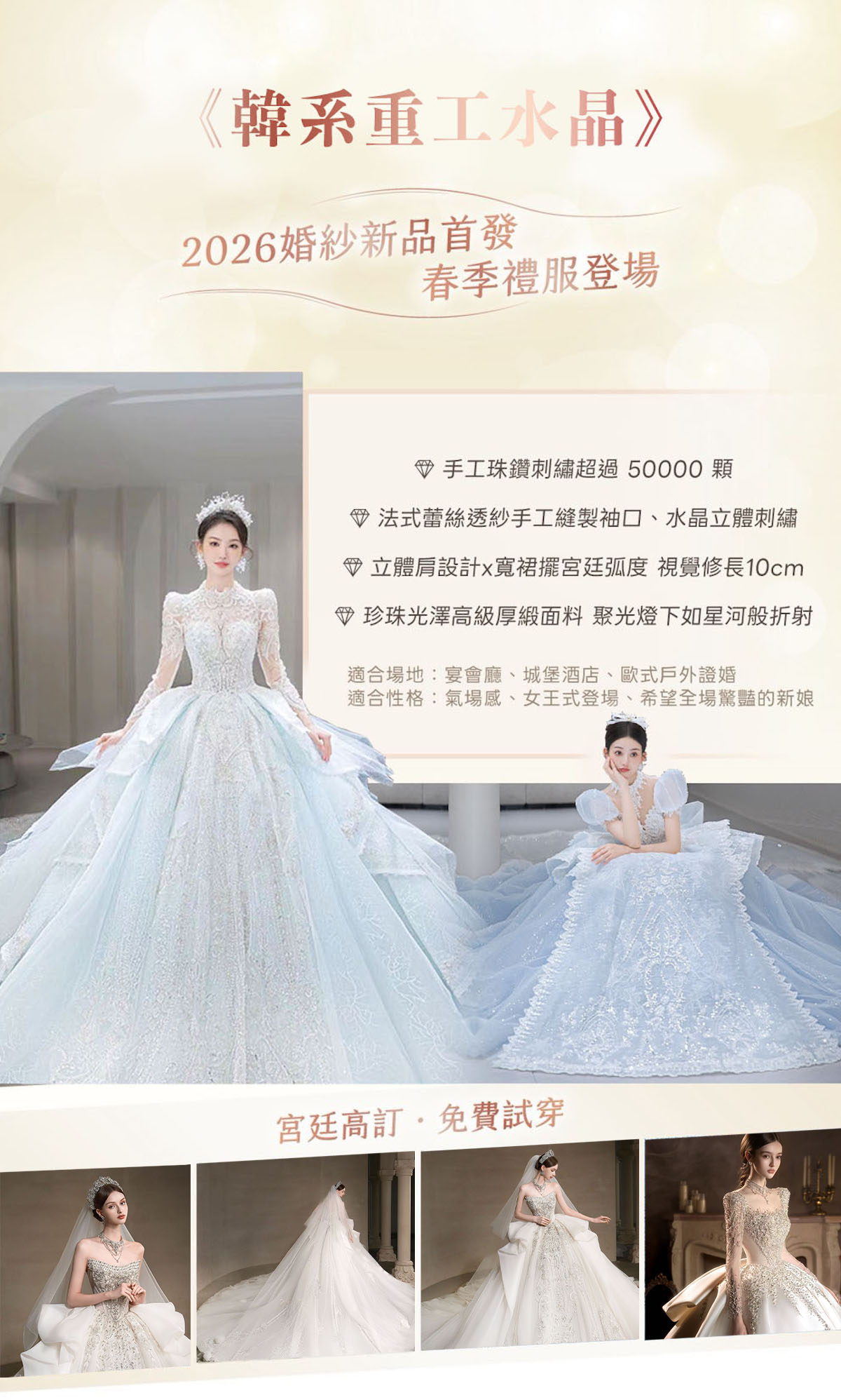 - 定期引進韓系手工頂級婚紗