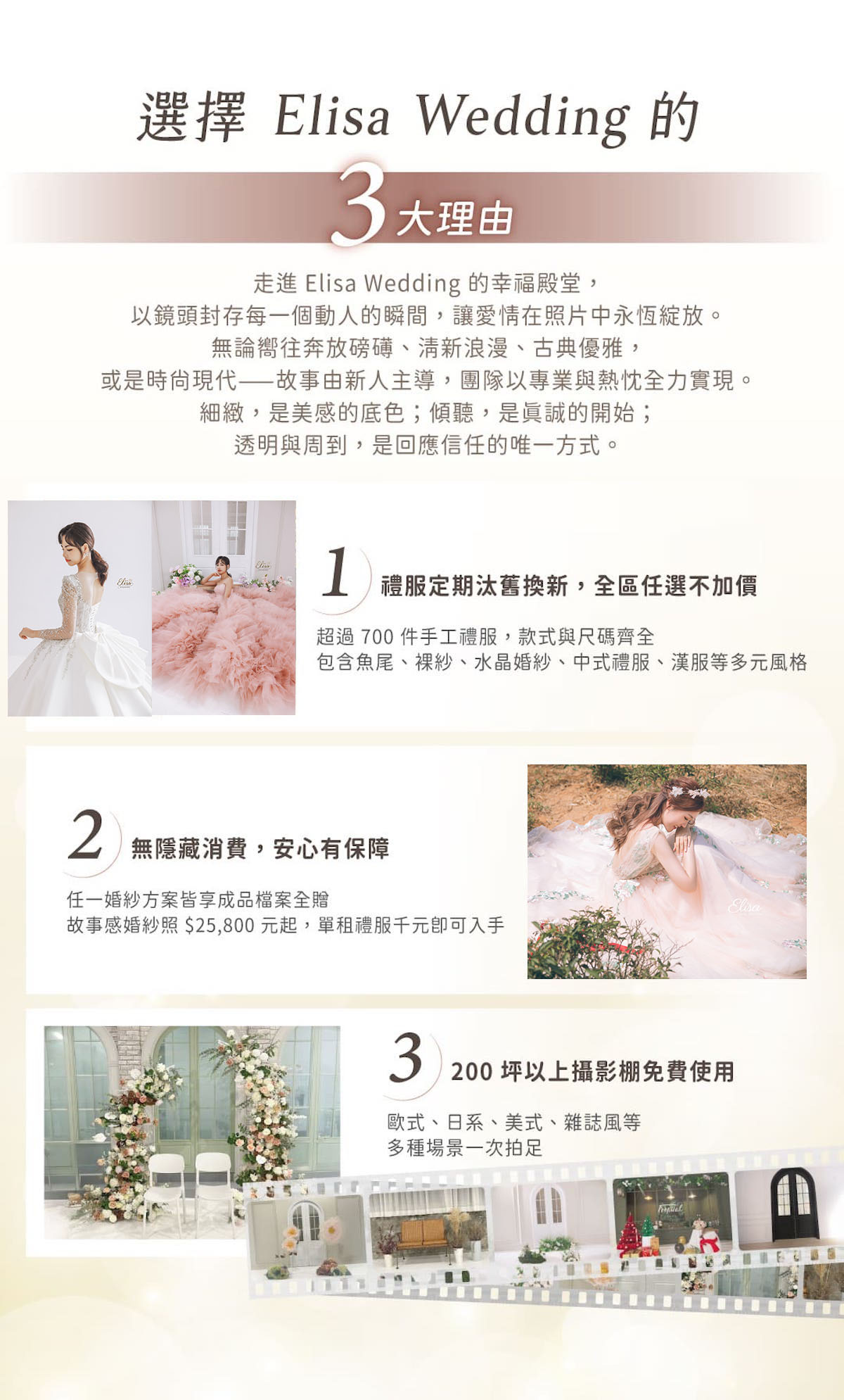 - 超過700件手工禮服,款式尺碼齊全
